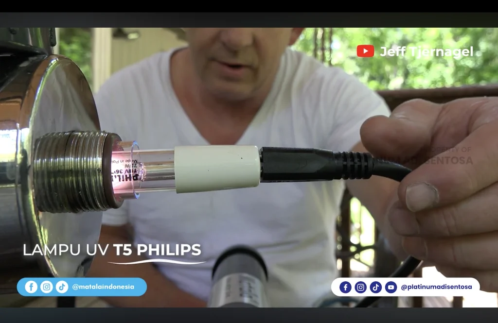 Lampu UV bekerja sebagai pembasmi alami yang mematikan mikroorganisme ini tanpa mengubah komposisi air atau membunuh bakteri baik yang hidup di media filter biologis. Dengan begitu, keseimbangan ekosistem kolam tetap terjaga.